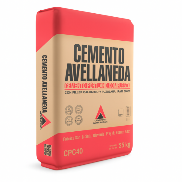 Bolsa de Cemento Portland CPC40 marca Cementos Avellaneda. Presentación en bolsa de 25 kg. Norma IRAM 50000.