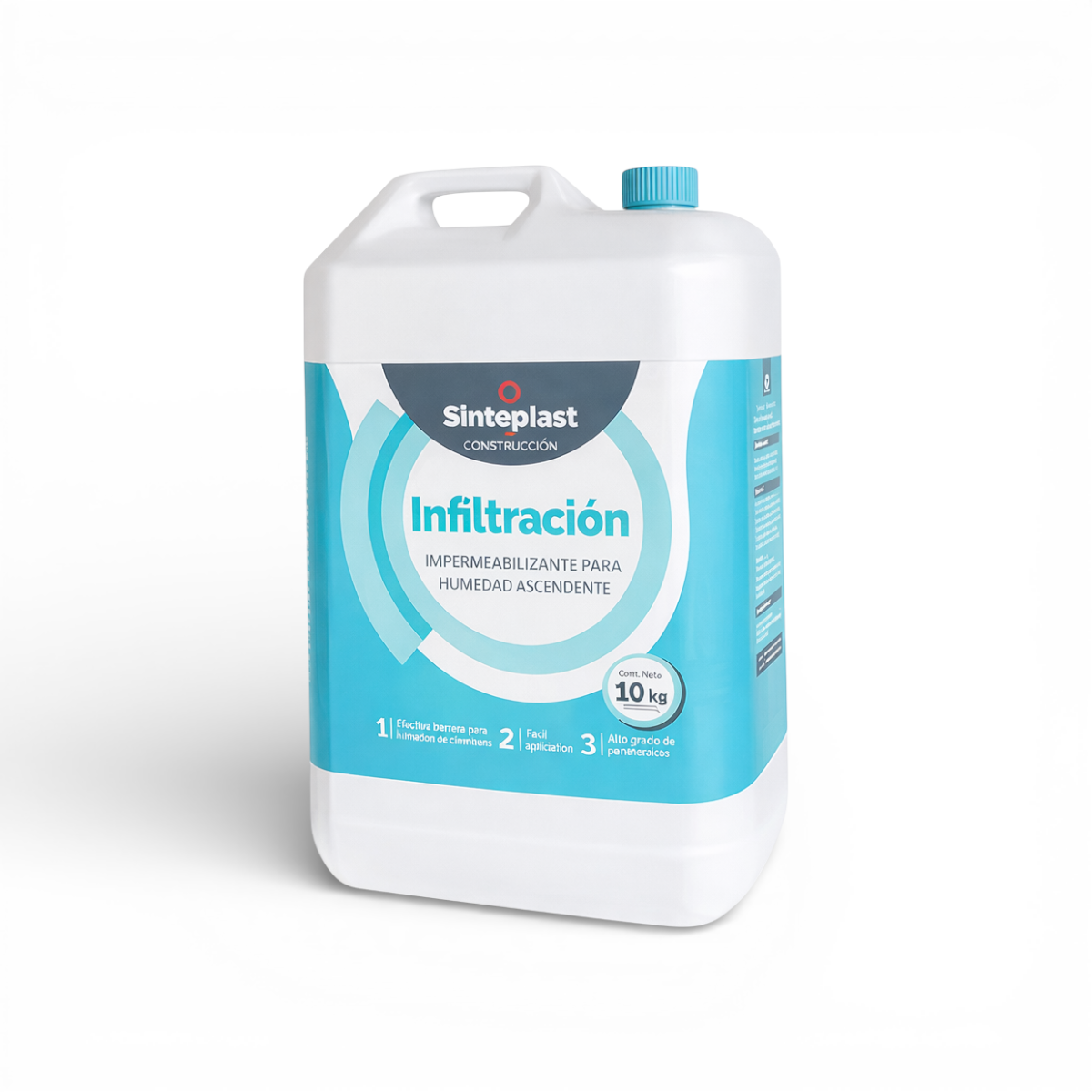 Impermeabilizante por infiltración Sinteplast de 10 litros, ideal para tratar humedad ascendente en paredes y muros. Penetra en profundidad, bloquea la capilaridad y evita la reaparición de la humedad.